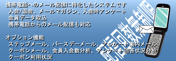 ステップメール、バースデーメール、アンケート案内メール、クーポンメール